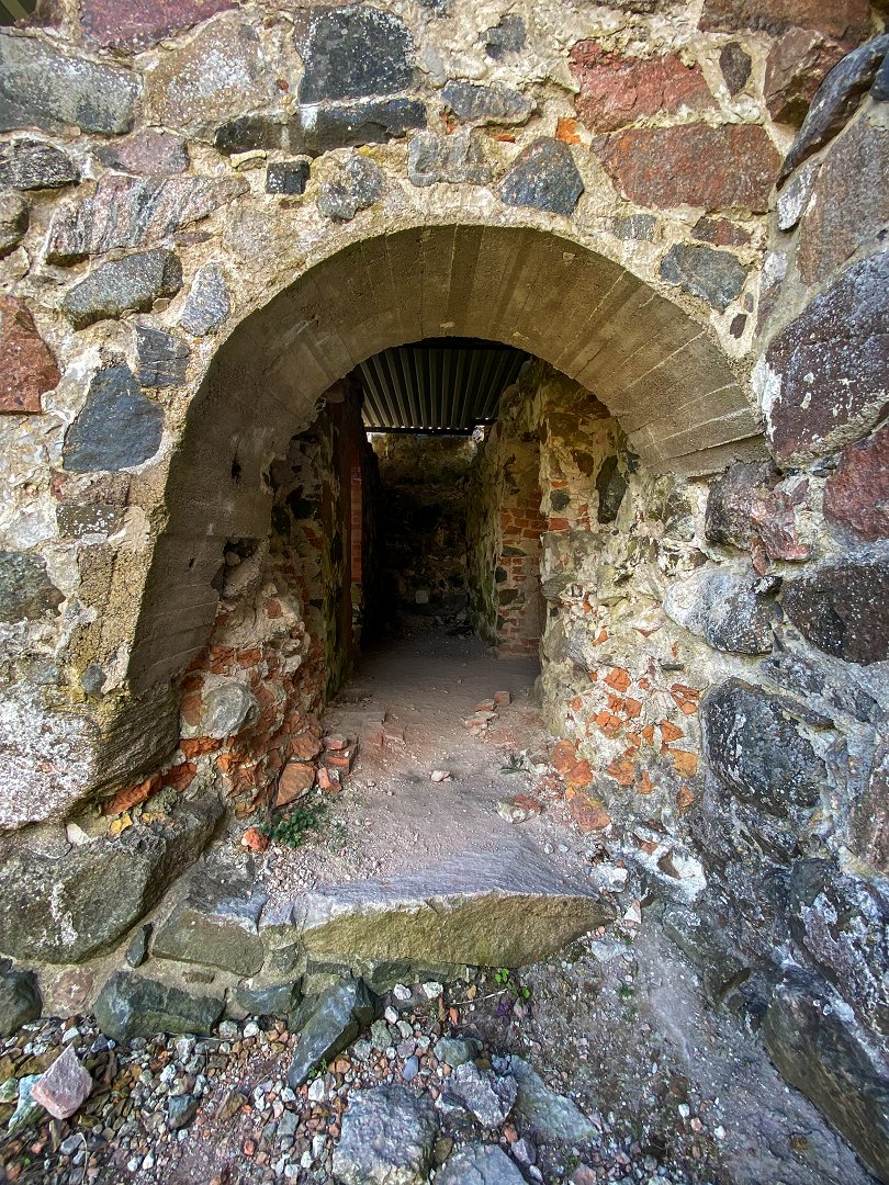 Jag betalar inträdet, köper en glass samtidigt och går upp till ruinen. Det första som slår mig när jag kommer in i ruinen är att insidan är i dåligt skick. Det ligger trasiga tegelstenar med flisor runtom på marken inne i många av ruinens rum och celler. Kan man inte städa upp lite och kanske sätta dit lite nya tegelstenar för att stadga upp och snygga till? Alla pengar kanske tog slut när en del av yttermuren rasade 2014.