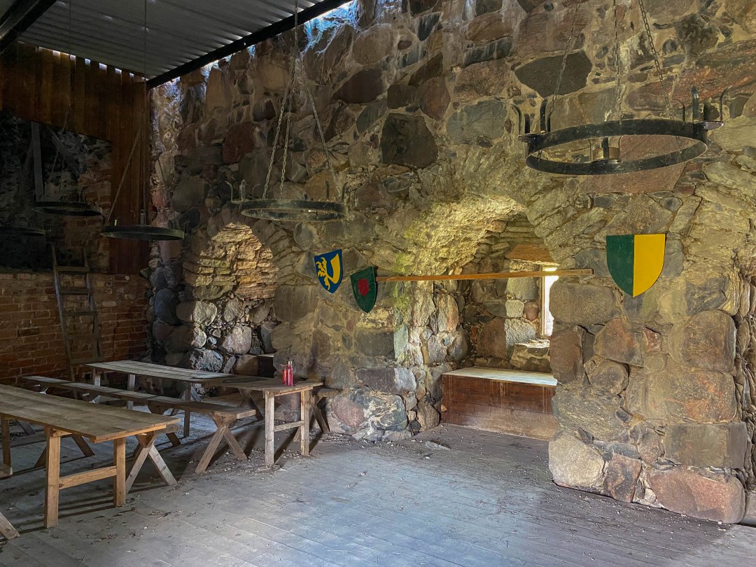 Ruinen påminner starkt om några engelska slott jag besökt där delar av interiören byggts i olika omgångar och under olika tidsperioder. Ruinen är väl värd ett besök och man kan gå in i tornet även om den översta delen av tornet inte längre går att komma upp i.