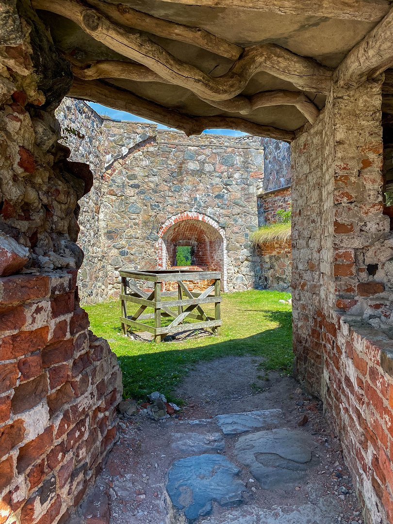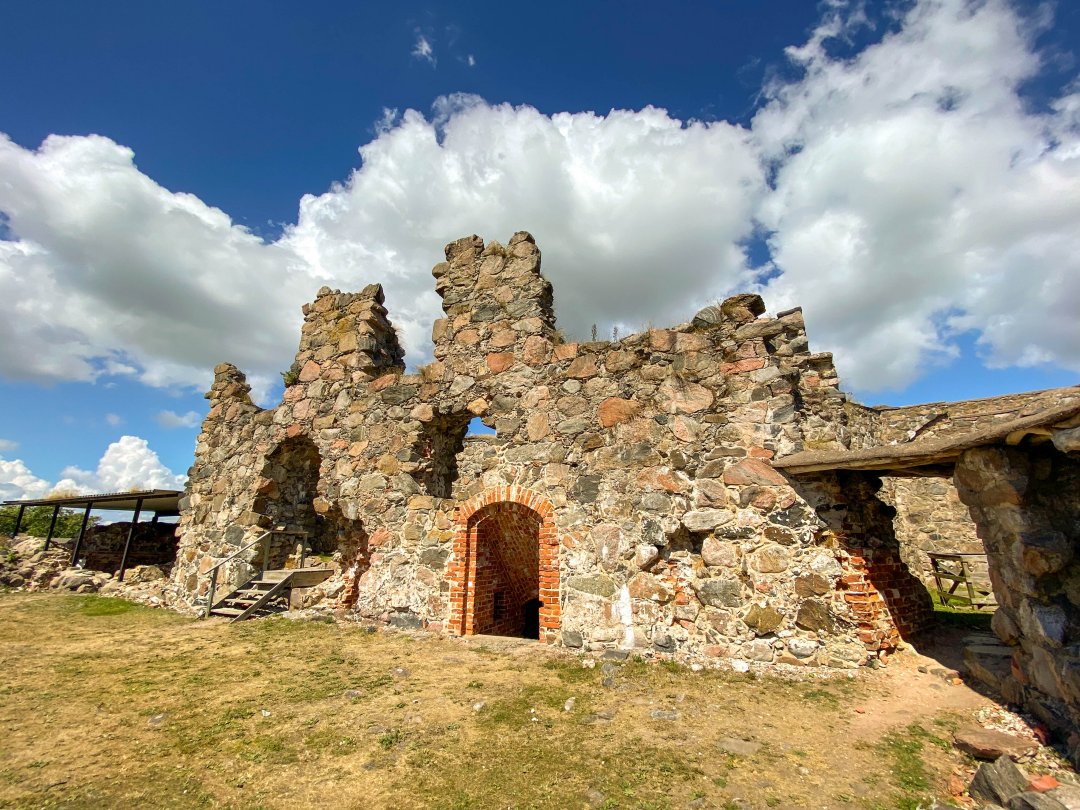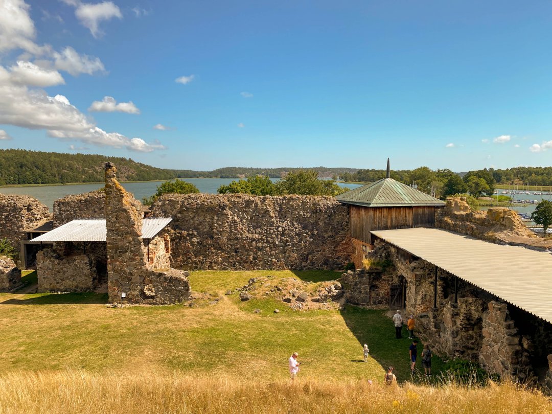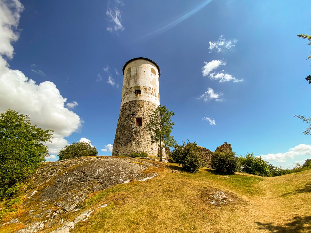 Slottsruinen visar sig vara lite av ett turistmecka. Jag blir tagen helt på sängen. Det är betalparkering och till och med inträde till ruinen. Det finns en småbåtshamn och en sjö krog och det är ganska mycket folk. Jag kan använda Easypark för att betala parkeringen och slipper ställa mig i kön till parkeringsautomaten. Att folk fortfarande 2025 inte har börjat använda Easypark är för mig ett mysterium.