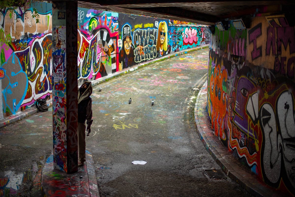 Efter restaurangbesöket vill ungdomarna gå ner till graffititunneln. Dotterns pojkvän har faktiskt målat en och annan piece, och det har även undertecknad, erhm… Jag gör alltså mitt andra besök till tunneln den dagen.