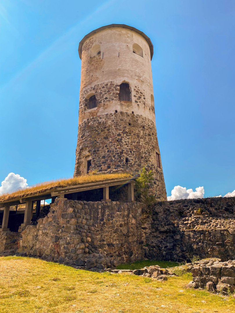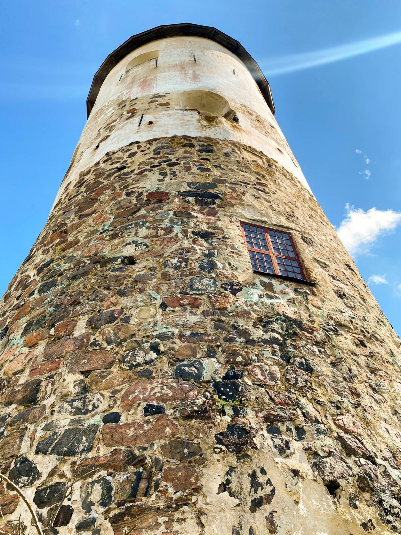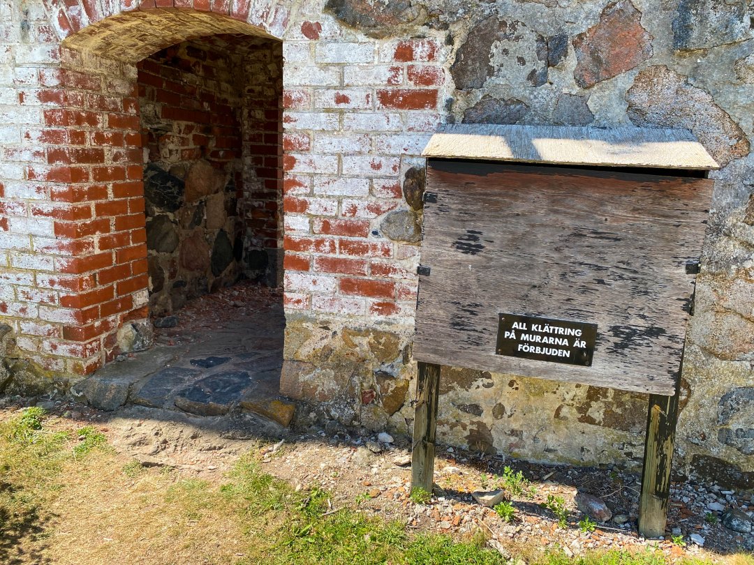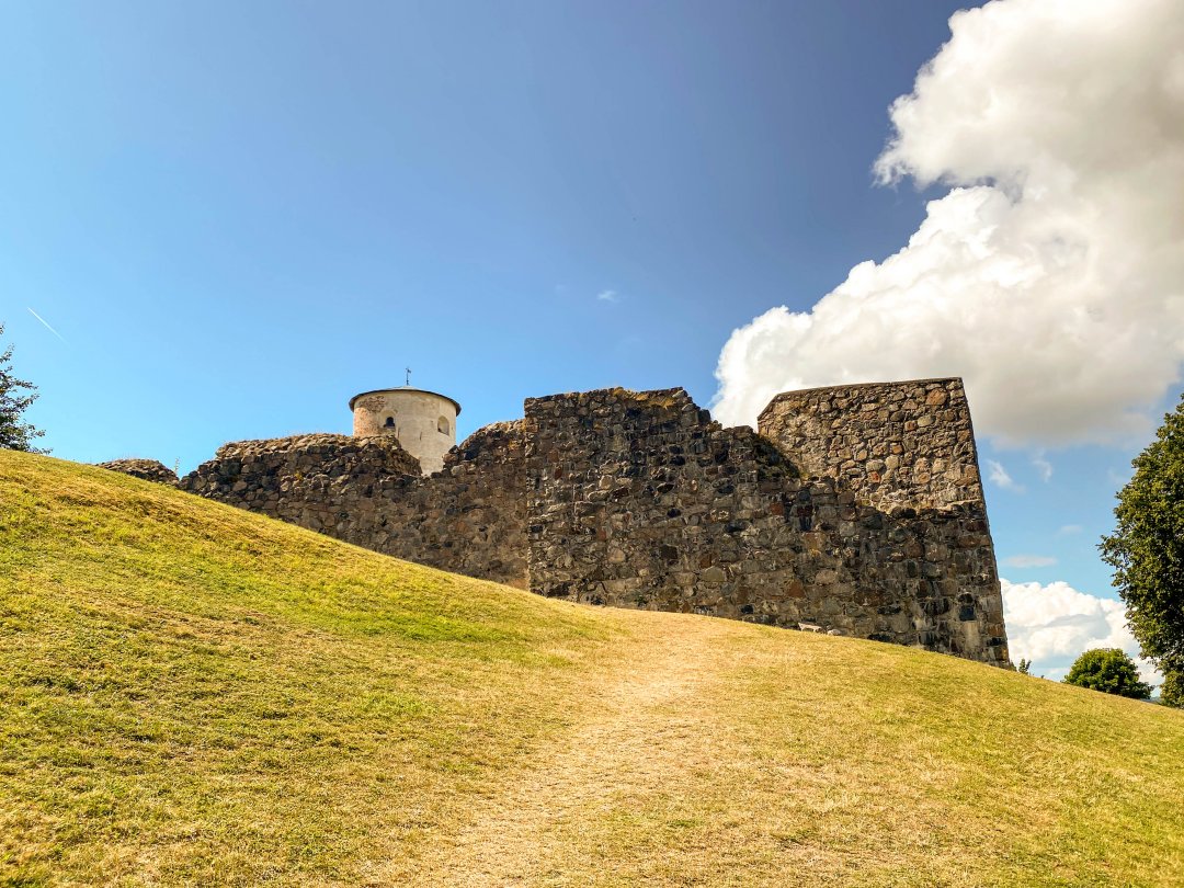Slottsruinen visar sig vara lite av ett turistmecka. Jag blir tagen helt på sängen. Det är betalparkering och till och med inträde till ruinen. Det finns en småbåtshamn och en sjö krog och det är ganska mycket folk. Jag kan använda Easypark för att betala parkeringen och slipper ställa mig i kön till parkeringsautomaten. Att folk fortfarande 2025 inte har börjat använda Easypark är för mig ett mysterium.
