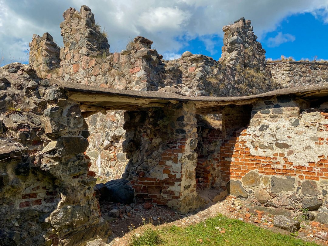 Ruinen påminner starkt om några engelska slott jag besökt där delar av interiören byggts i olika omgångar och under olika tidsperioder. Ruinen är väl värd ett besök och man kan gå in i tornet även om den översta delen av tornet inte längre går att komma upp i.