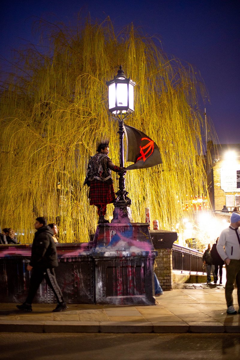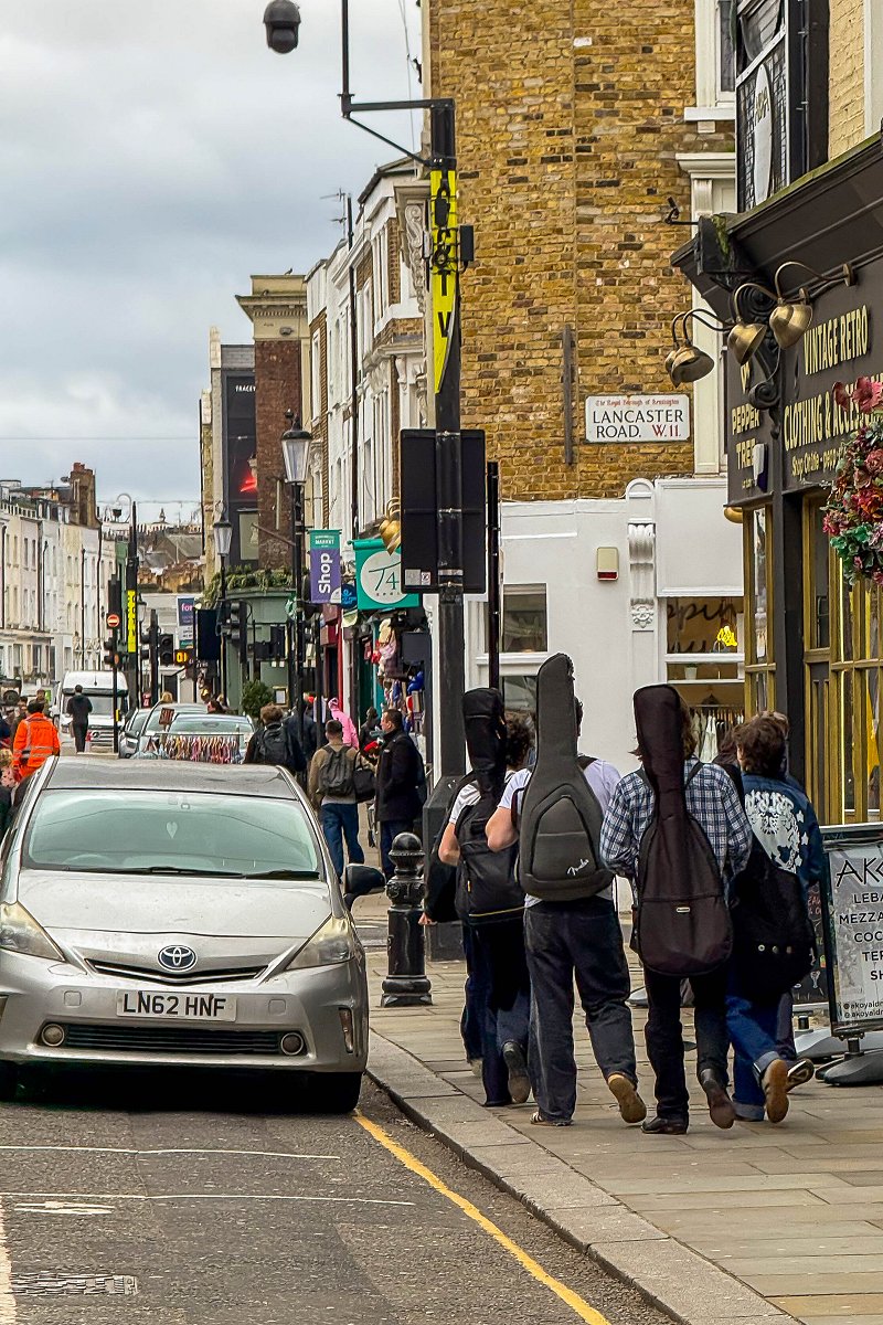 I Notting Hill stöter vi på ett gäng grabbar som färgat sitt hår i samma färg. Jag lyckas ta ett kort på de från andra sidan gatan men en dam hinner kliva in i bilden från vänster.