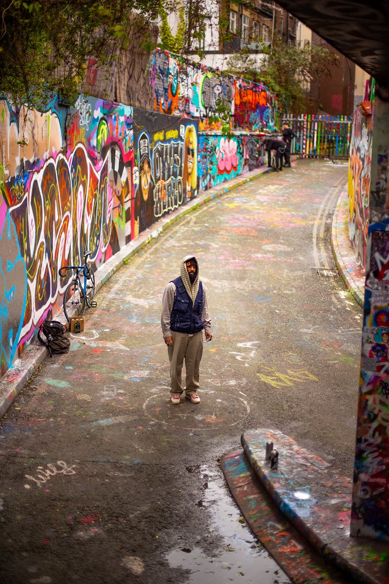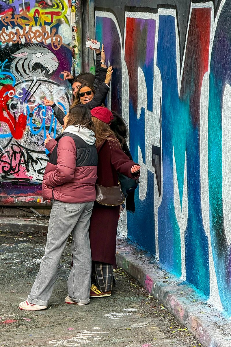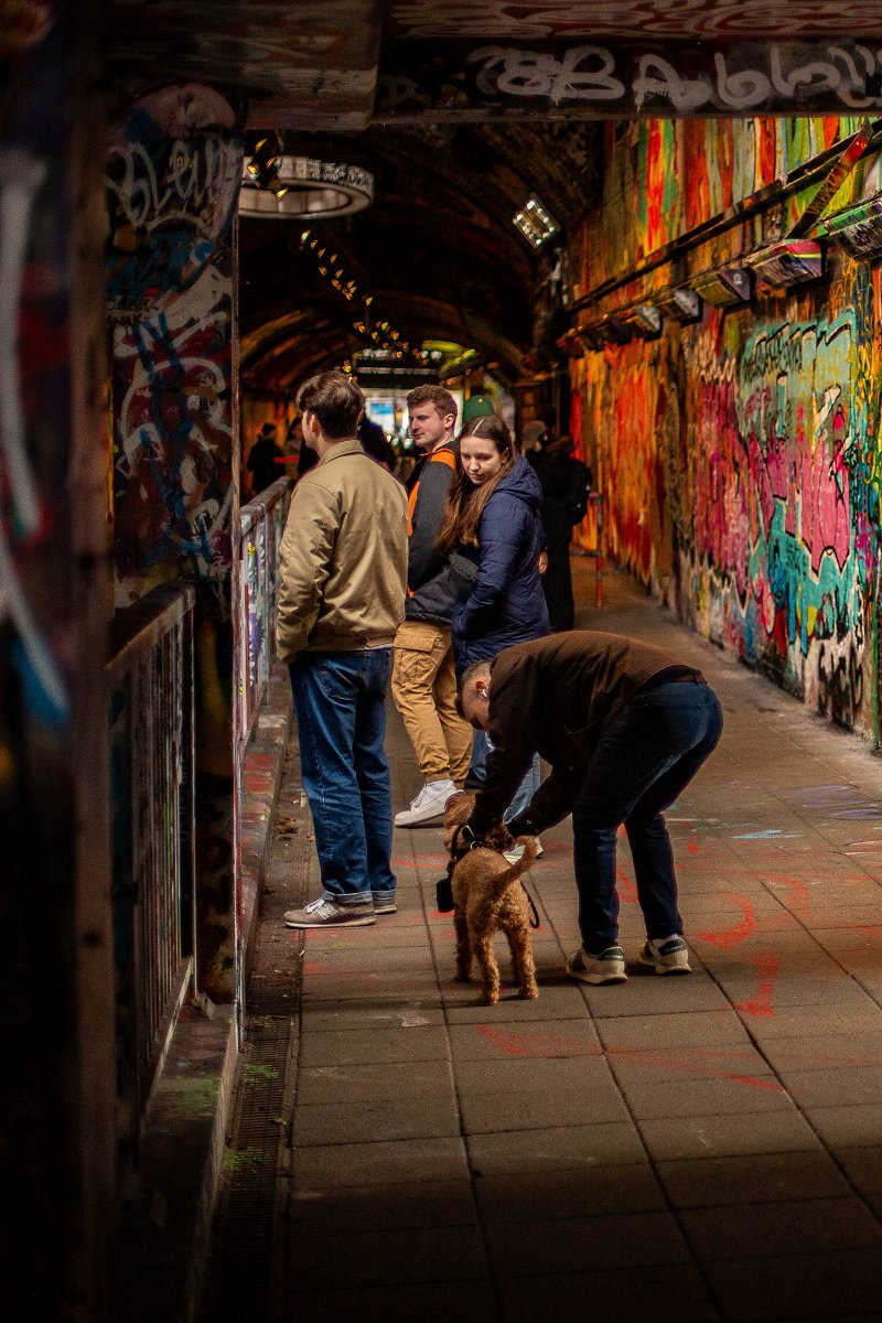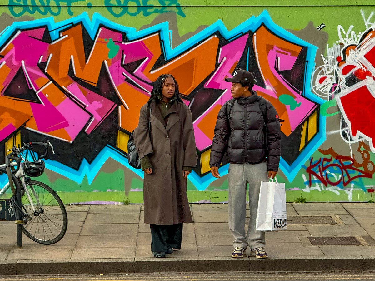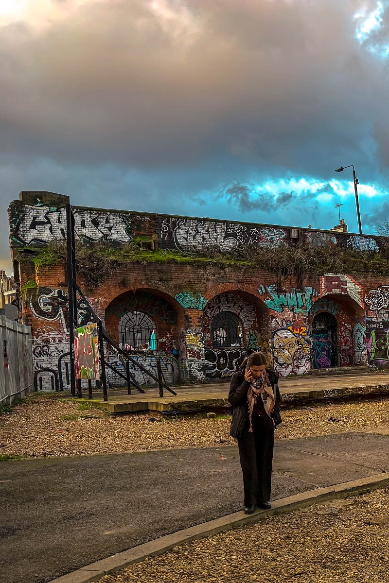 I Spitalfields tar jag en bild på ett par som står framför en graffiti. Tjejen ser ledsen ut men bilden är rak och fin men kanske inte helt skarp.