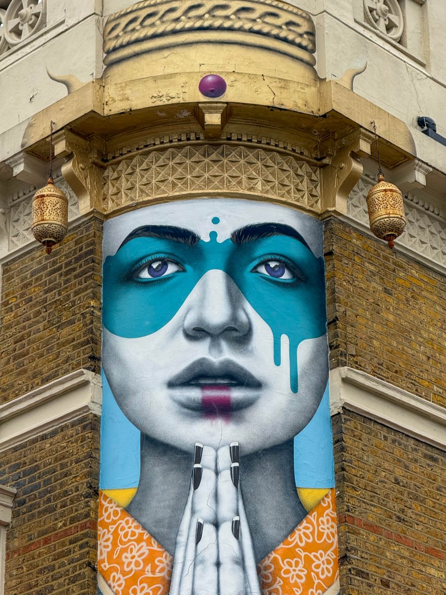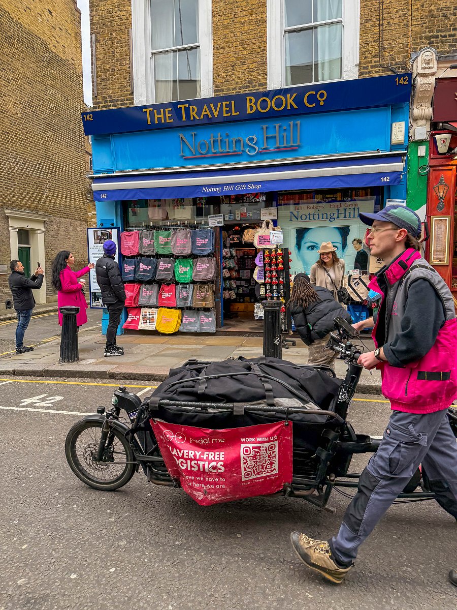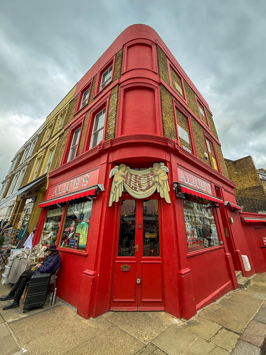 Vi tar tunnelbanan till stationen Notting Hill Gate som ligger i närheten av Notting Hill. Vi lyckas dock med konststycket att gå rakt in i ett bostadsområde där vi till slut efter 10 minuters promenad återvänder till platsen där vi började. Vi rättar till vårt misstag och följer sedan gatan Portobello Road hela vägen genom Notting Hill. Gatan är känd för sina vintage och second hand butiker. Ungdomarna shoppar och jag fotar. Vi passerar såklart bokaffären som är med i filmen Notting Hill. En mindre folkmassa huserar utanför affären och fotar varandra och sig själva.