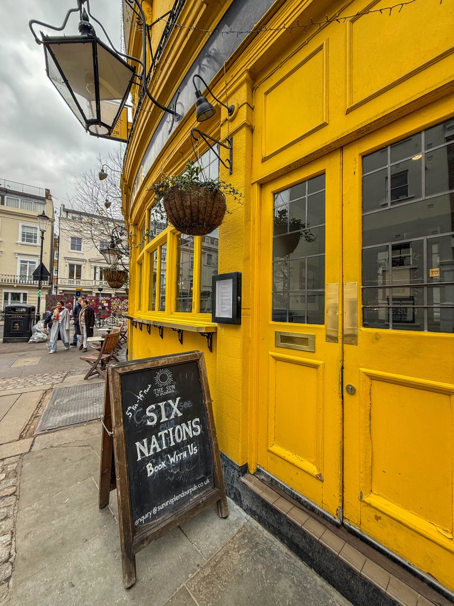 Efter lunchen tar jag en paus ifrån shoppingen och går och tar en öl på en annan pub alldeles i närheten. Jag sitter ensam på uteserveringen, det är ca 12 grader och inte jättevarmt men det går. Funderingarna går kring var den blåa dörren kan vara någonstans. Alltså den blåa dörren som tillhör huset där Hugh Grants karaktär bor i filmen Notting Hill. Vi har redan passerat bokaffären där han jobbade. Tyvärr är det inte längre en bokaffär, om det nu någonsin varit det. Utbudet verkar vara krimskrams riktat mot turister. Vi iddes inte ens gå in i butiken men det var underhållande att spana in alla turister om fotade sig själva och varandra framför butiken. Det stannar fyra kvinnor inte långt ifrån där jag sitter och en av de säger: ”There is the blue door, the actuall blue door from the movie”. Jag vrider lite lätt på huvudet och upptäcker att jag sitter endast 20 meter ifrån den blå dörren. Gud så praktiskt, letande är över, nej, jag har inte letat! Ha ha ha! Jag reser mig inte ens upp utan fotar dörren sittandes ifrån uteserveringen.
