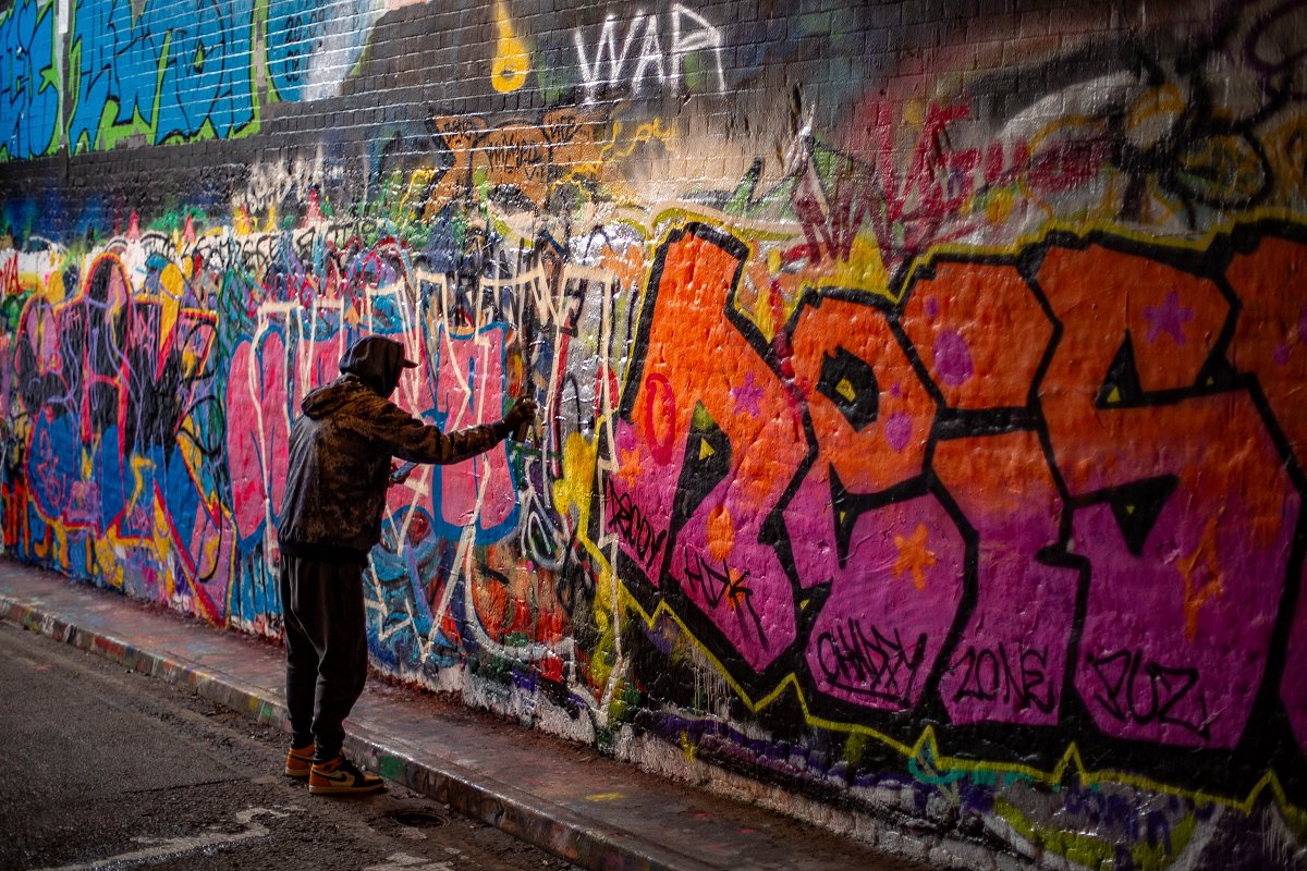 Dotterns pojkvän får i alla fall måla sin piece till slut och vi donerar färgen som blir över till några andra målare på platsen. Även dottern deltar med stor fröjd och jag lånar såklart en burk och drar min gamla tag på ett hemligt ställe.