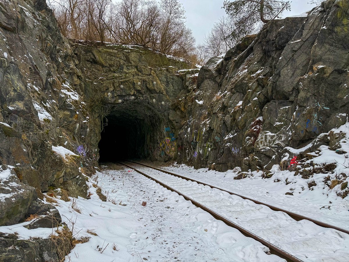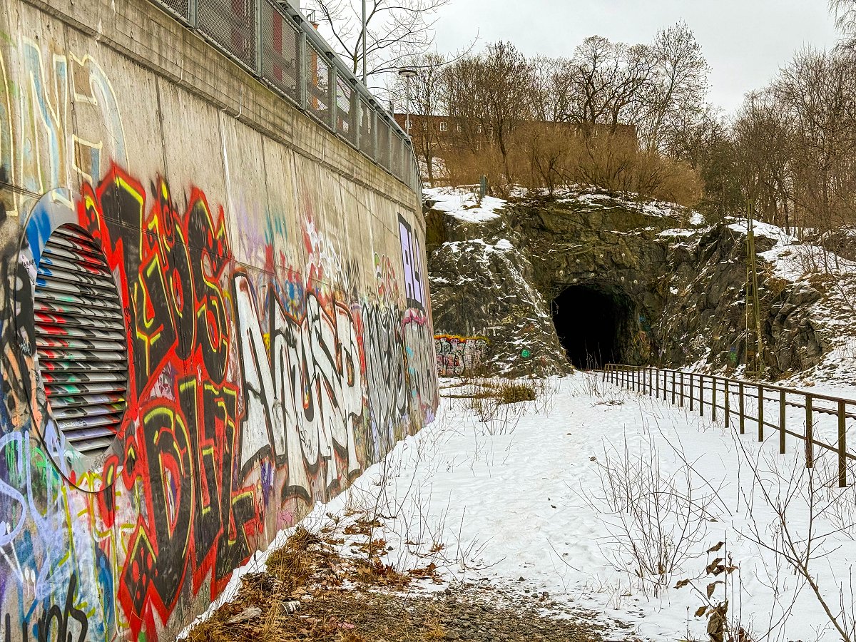 Järnvägstunneln i Nyboda i Liljeholmen i Stockholm är tydligen den första järnvägstunneln som byggdes i Sverige, närmare bestämt 1860. Jag har jobbat i Liljeholmen i nästan 7 år och varit helt ovetandes om denna väl bevarade hemlighet. Vi var några stycken som var ute och käkade lunch och tog en promenad och vi passerade tunneln av en slump. En av mina kollegor visste mer om tunneln än jag och kunde berätta att tunneln nog var väl värd ett besök. Jag bestämde mig för att återvända vid ett senare tillfälle och även läsa på lite. Man vill ju inte traska in i tågtunnlar som används.